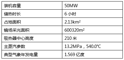电站位于青海省海南州共和县西南方向约12公里的生态太阳能发电园区,采用塔式熔盐技术,共配置30016面20m²的定日镜,设计年发电量1.569亿度。