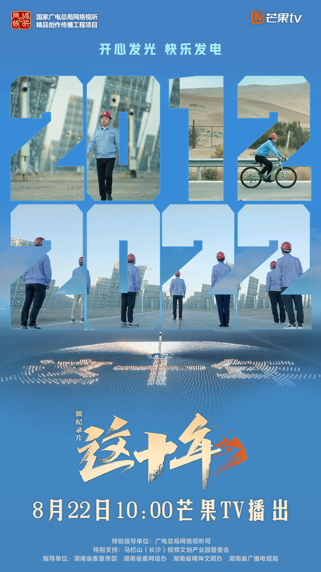 由广电总局网络视听司特别指导,马栏山视频文创园特别支持,湖南省委宣传部、湖南省委网信办、湖南省精神文明办、湖南省广播电视局指导,芒果TV打造的微纪录片《这十年》8月22日播出第七期。本期通过国家科学技术进步奖获得者黄文博的视角,讲述他建设敦煌光热电站的奋斗故事,看我国新能源行业这十年间的飞跃发展。