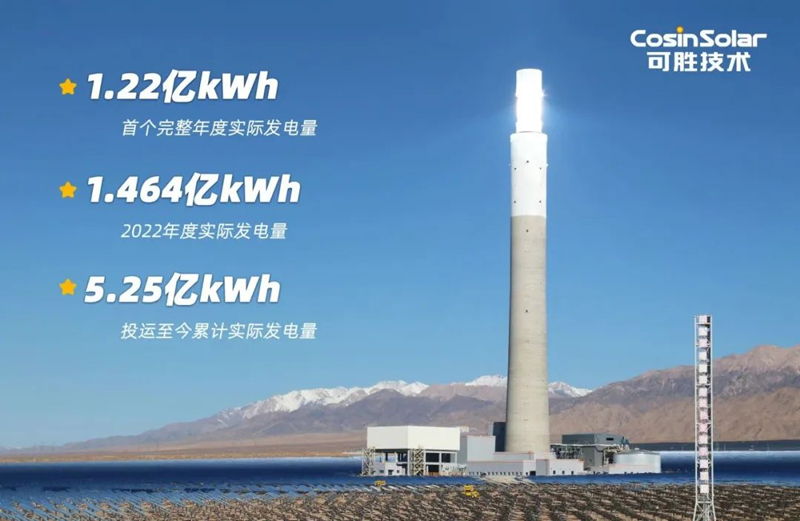 为推动我国光热发电技术产业化发展,国家能源局2016年启动首批20个光热发电示范项目,装机规模总量达134.9万千瓦,开启了我国光热发电的商业化进程。2022年,由可胜技术完全自主开发、建设、运营的国家首批光热发电示范项目——青海中控德令哈50兆瓦光热电站率先达产,成为全球首个实现达产的塔式熔盐储能光热电站。今年,可胜技术在全球范围内率先达到100万千瓦的塔式光热发电业绩。