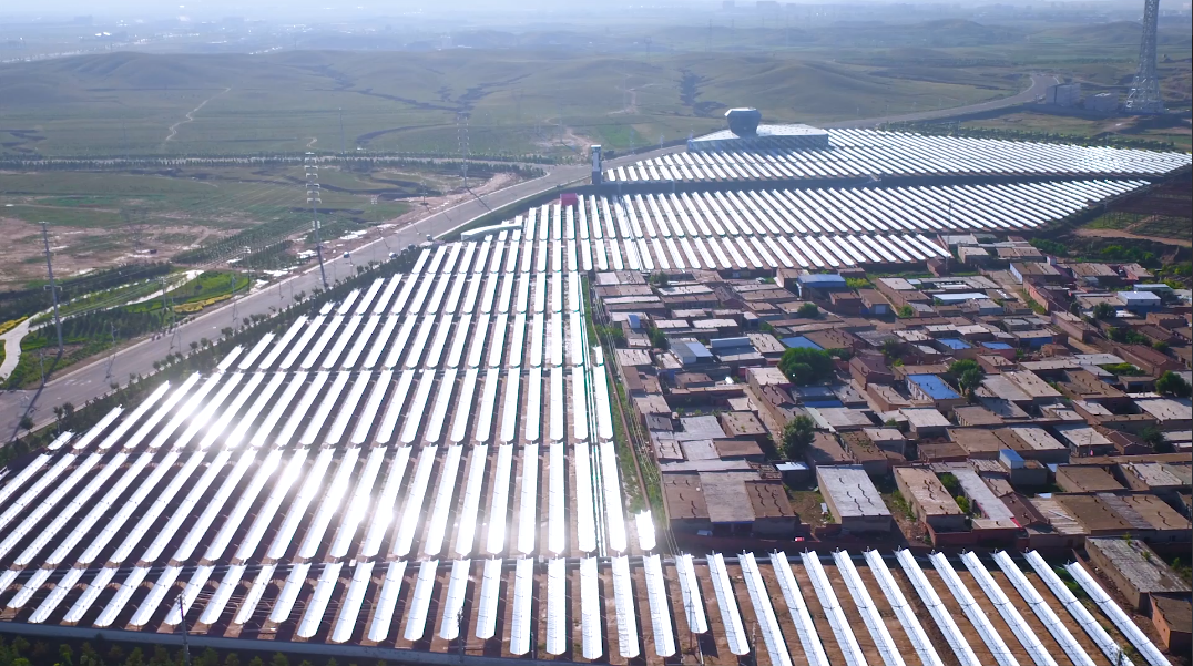 栗战书委员长提到的“光热”,就是采用一定装置收集太阳光并转化为热能加以利用的技术形式。太阳能光热供热供暖是在科学、技术和经济上都可行的一种可再生能源采暖方式。在内蒙古包头市青山区兴胜镇宏庆德村,有这样一个槽式太阳能聚光集热供热系统正在使用。槽式太阳能集热场面积高达7.1万平方米,可实现供热面积35.5万平方米。这是国内甚至是全球首例大型槽式太阳能供热供暖项目。