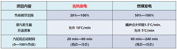 由上表可见:与燃煤发电相比,光热发电机组具有更优异的调节性能。