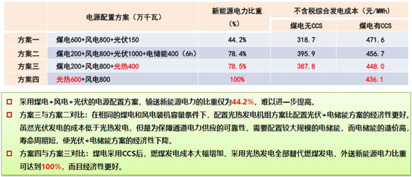 采用煤电+风电+光伏的电源配置方案,输送新能源电力的比重仅为44.2%,难以进一步提高。