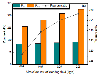 图 3 流量以及压力随工质流量以及冷源流量变化情况