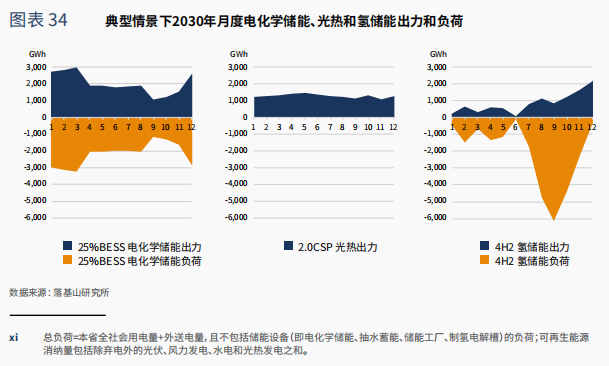 电化学储能和氢储能均提高了午间对新能源的消纳能力,减少了弃风弃光,配套蓄热能力的光热明显在晚间提高了出力水平。