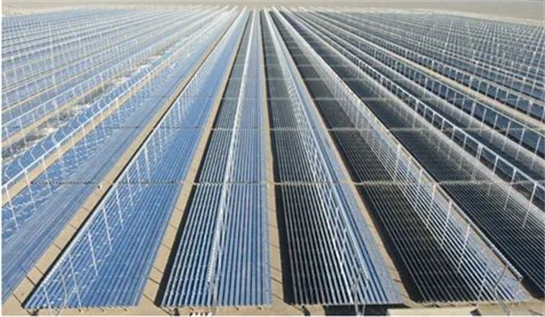 正在施工中的中核玉门光热+一体化项目熔盐线性菲涅尔式聚光集热系统