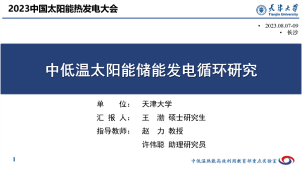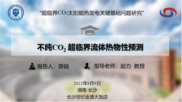 天津大学赵力教授课题组硕士研究生薛娟、王渤分别在“超临界CO₂太阳能热发电关键基础问题研究”2023 年学术研讨会和太阳能热利用技术青年论坛上作了题为《不纯CO₂超临界流体物性预测》、《中低温太阳能储能发电循环研究》的报告。