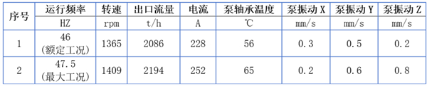 改造后进口冷盐泵(2# 工位B)运行数据如下表: