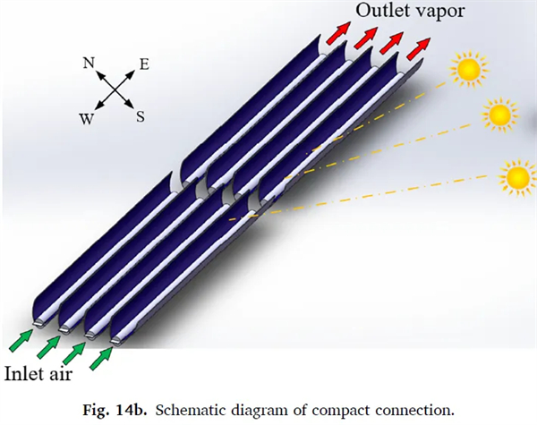 本文的研究具有重要的创新性和实际意义。非对称CPC聚光设计可以增强界面蒸发材料表面的能流密度,提高蒸发速率;采用双层玻璃管结构不仅有效减少了环境热损失和提高太阳能利用率,还形成了空气带动蒸汽流动的通道,避免水蒸汽聚集现象发生;CSIED装置可以根据应用需求进行灵活的串联或并联,实现大规模化应用,研究结果为界面蒸发技术在实际环境中的应用提供了新的解决方案。这些创新不仅可以推动界面蒸发技术向实际应用的转化,也为解决全球淡水资源短缺问题提供了新的技术路径。该研究的成功实施将为未来太阳能驱动的海水淡化和污水处理领域带来重要的技术突破。