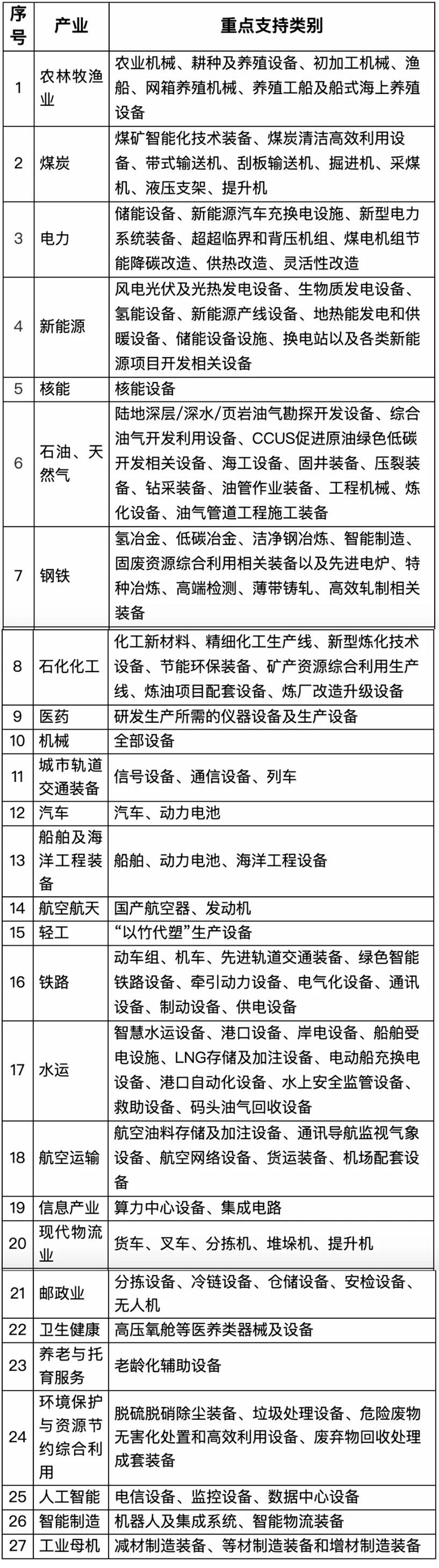 鼓励清单以国家战略需求为导向,将农林牧渔、新能源、医药、船舶和海洋工程等27个产业中的农业机械、风电光伏、光热发电、医药研发、船舶等重要设备和重大技术装备纳入鼓励清单范围。