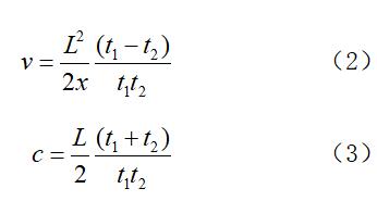 在式(2)和式(3)中,v为流体速度,c为工况条件下声速,L为测量探头间距,x为测量探头水平距离(管道流量方向),t1为超声波上游传输时间,t2为超声波下游传输时间。