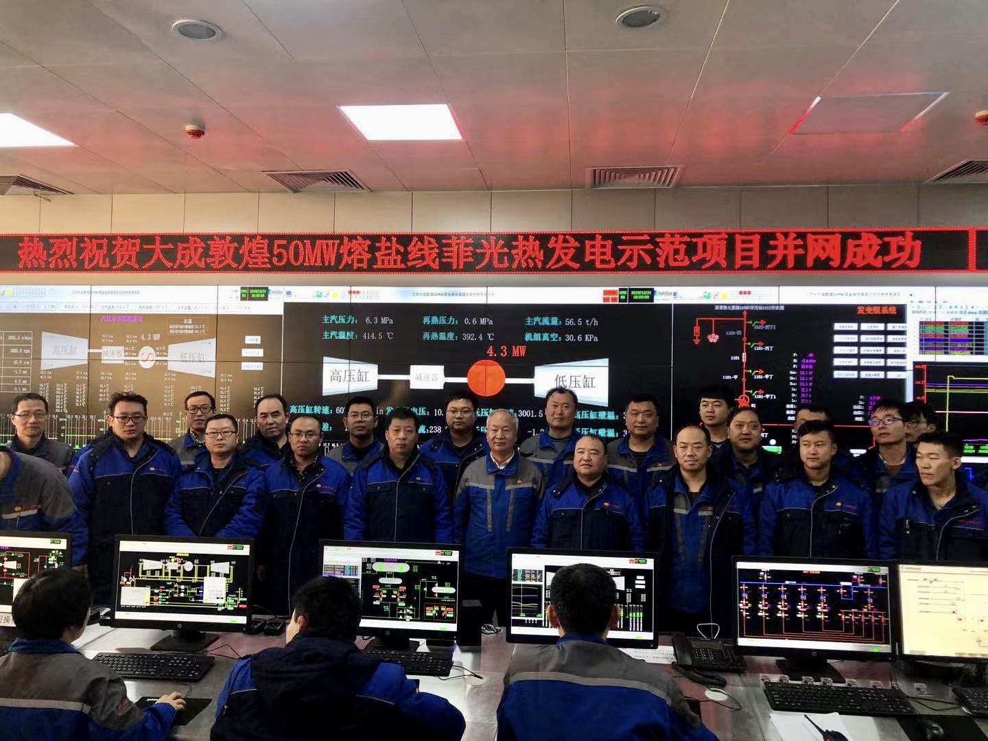At 17:50 on December 31, 2019, Lanzhou Dacheng Dunhuang 50MW molten salt Fresnel CSP Project was successfully synchronized to the gird.