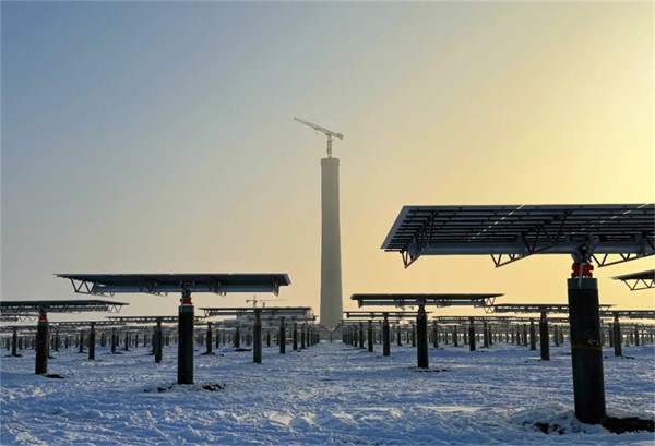 It is reported that the construction of the nearly 200-meter-high heat absorption tower is nearing completion, with various tasks progressing in an orderly manner. Some heliostats have already been installed.