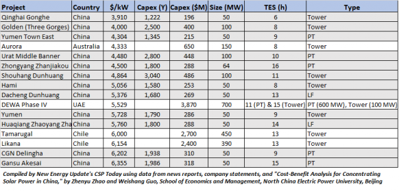 The cost of building new CSP plants has fallen significantly as developers have moved towards China and the Middle East and embraced tower technology with storage, New Energy Update has found.