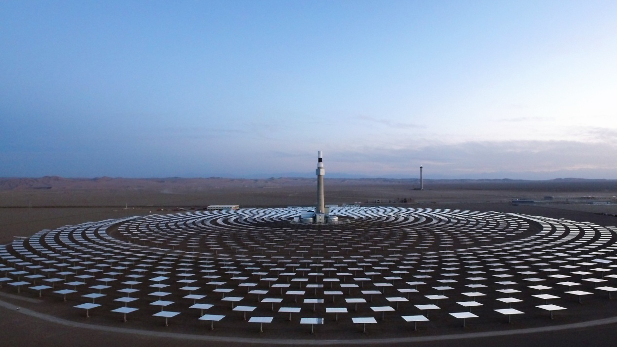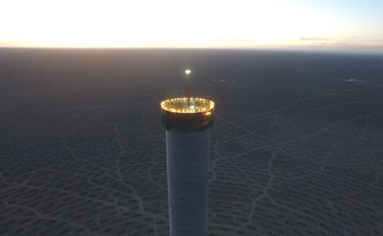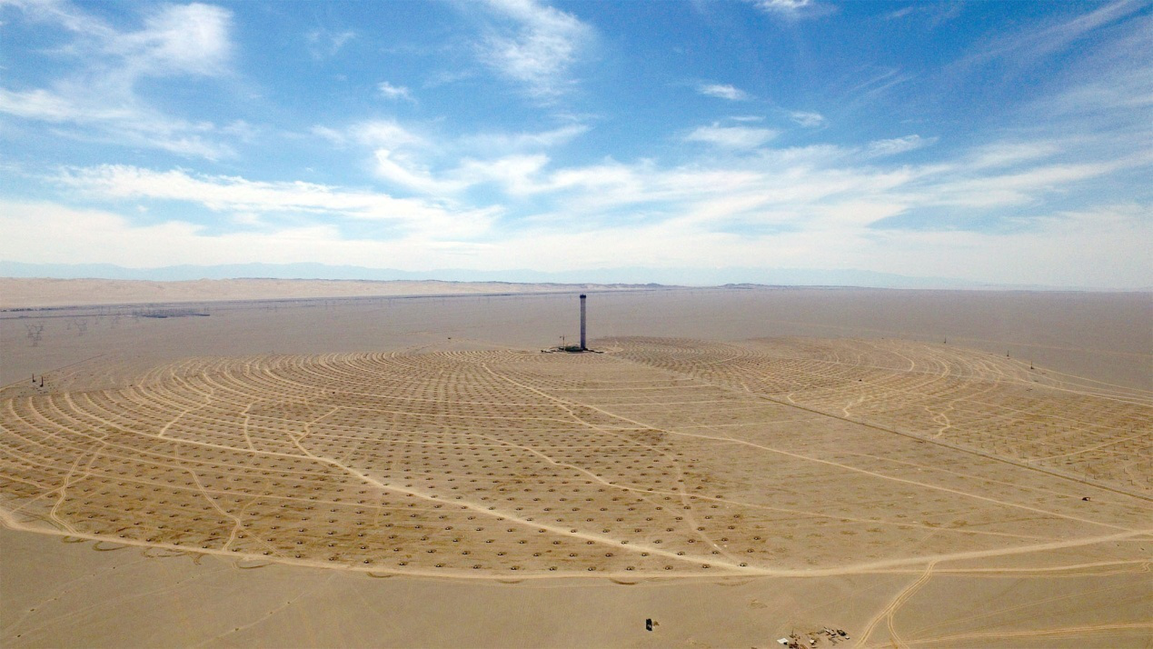 图:已投运的首航节能敦煌一期10MW熔盐塔式光热发电项目