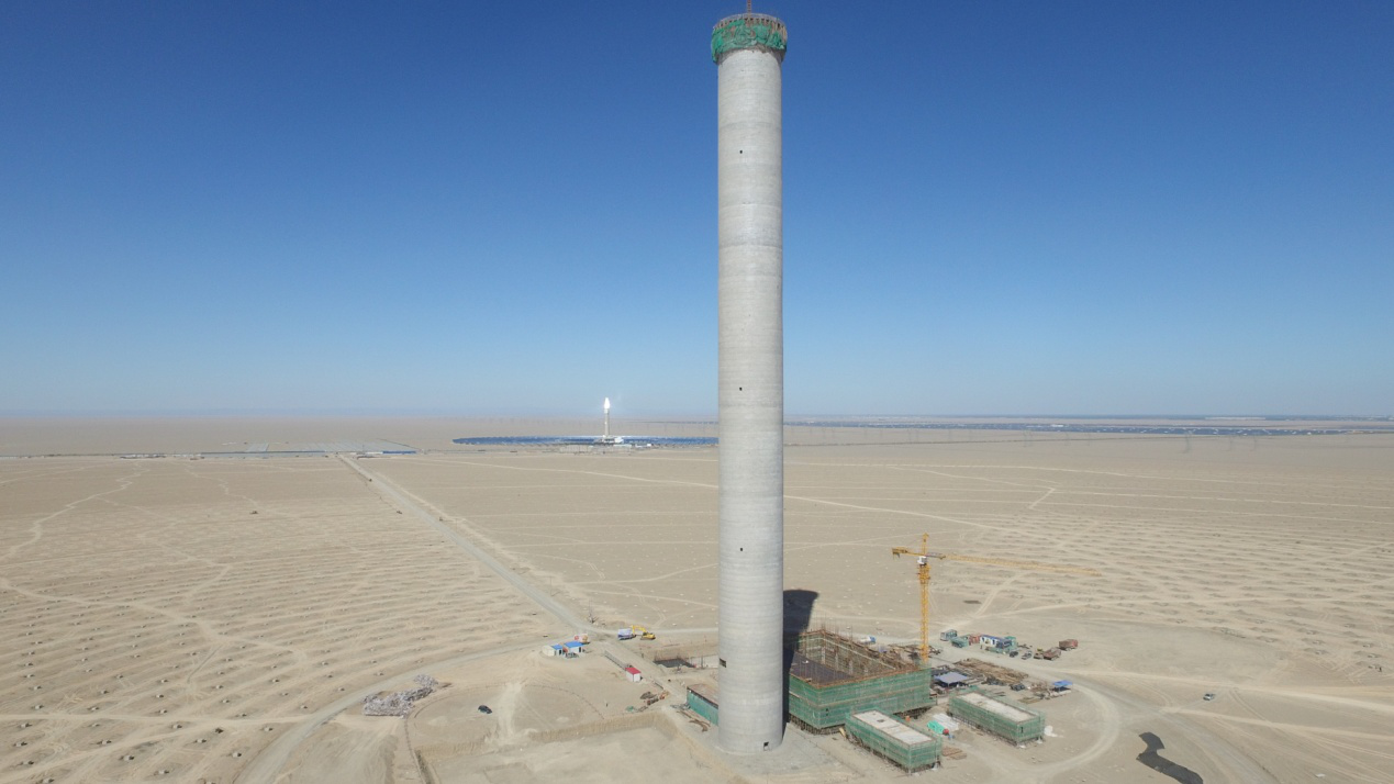 近日,北京首航艾启威节能技术股份有限公司敦煌熔盐塔式10万千瓦光热发电示范项目建设工地传来最新消息:其吸热塔高建设已达到200米,将于近期完成封顶。该项目于2014年开始前期工作,2015年前开始设计工作,2015年11月开工奠基、并持续进行设计优化,2016年的11月开始进场建设,预计2018年8月并网发电。