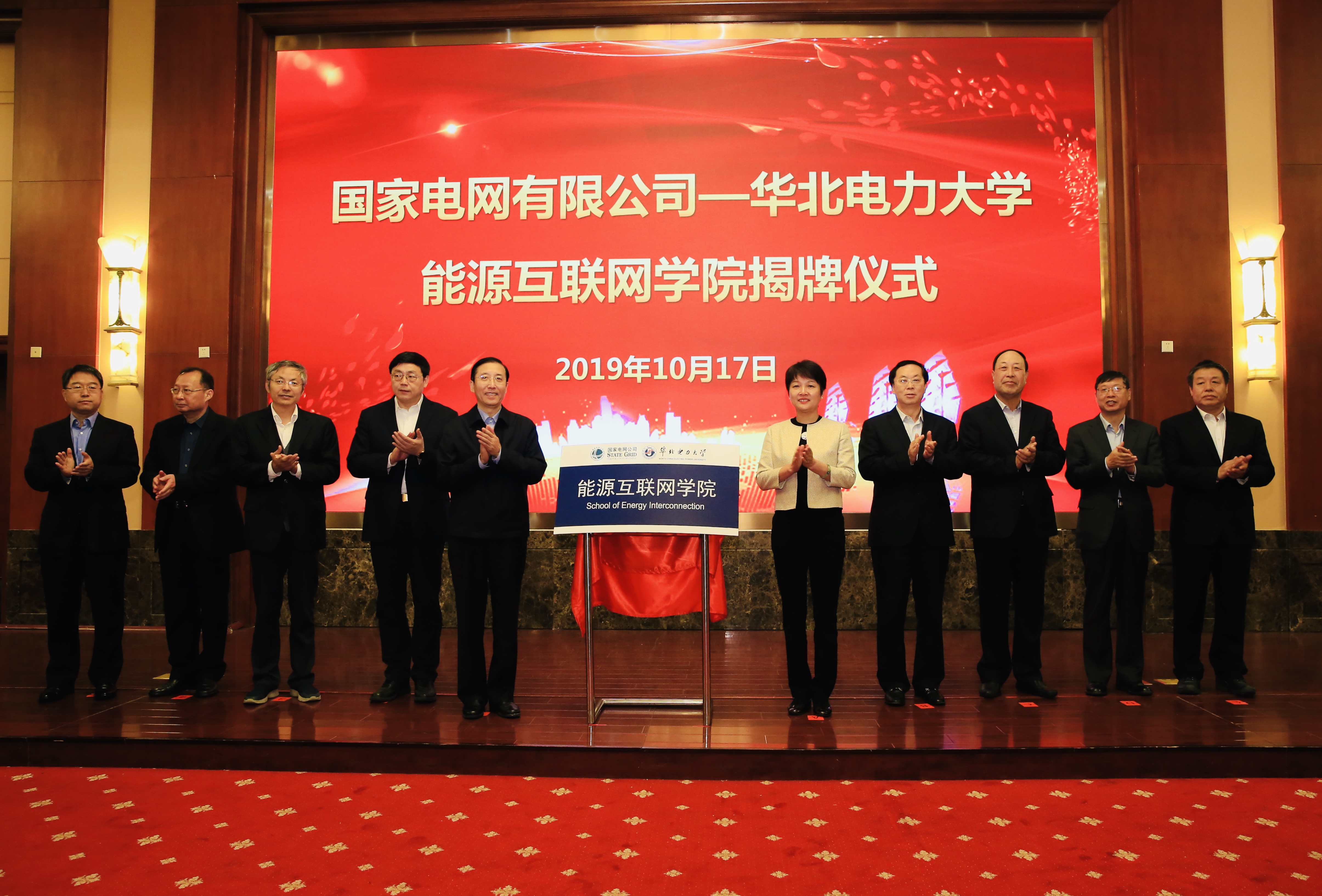 10月17日上午,国家电网有限公司-华北电力大学能源互联网学院在北京正式揭牌。华北电力大学党委书记周坚与国家电网有限公司总经理、党组副书记辛保安共同为“国家电网有限公司-华北电力大学能源互联网学院”揭牌。