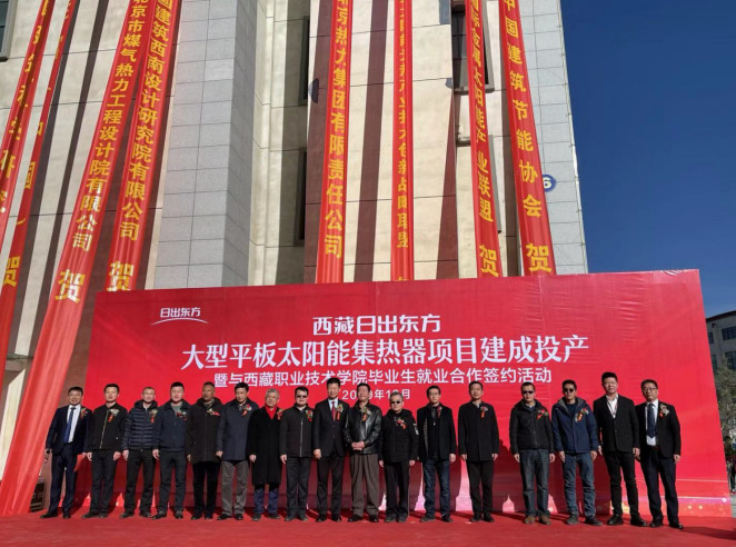 12月22日,西藏日出东方大型平板太阳能集热器项目建成投产仪式暨与西藏职业技术学院毕业生就业合作签约活动在拉萨经开区B区工业中心成功举行。