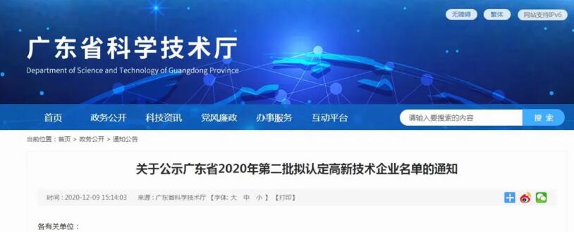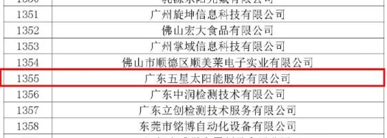 近日 ,广东省科学技术厅官网发布了《关于公示广东省2020年第二批拟认定高新技术企业名单的通知》,广东五星太阳能股份有限公司(以下简称“五星太阳能”)再次被认定为高新技术企业。