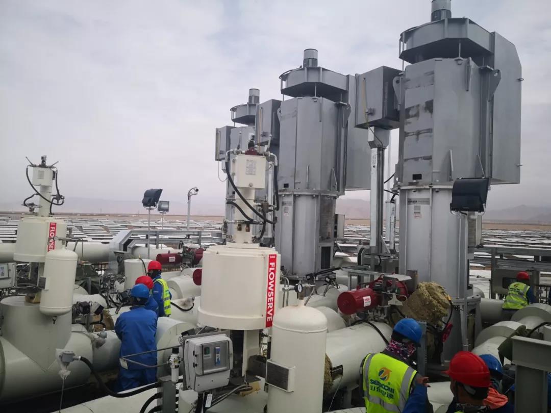 中控德令哈10MW熔盐塔电站、滨海光热阿克塞800米熔盐槽回路