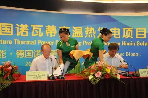并在2010年7月17日与德国诺瓦蒂公司签署的有关协议,皇明太阳能公司将向西班牙出口长达27000米、30兆瓦的菲涅尔式高温热发电的核心部件镀膜钢管,目前该电站已正常运行。