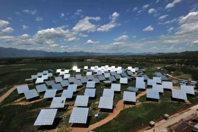 北京延庆太阳能高温热发电站镜场,由中科院、皇明太阳能股份有限公司和华电集团等单位联合完成,是中国首座自主知识产权光热发电站,属于国家863计划,2006年立项,2008年获发改委批准、允许并网发电,发电容量为1兆瓦,属于示范项目。电站建成后,每年的发电量将达270万度,相当于1100余吨标准煤产生的电量,可减排二氧化碳2300余吨、二氧化硫21吨、氮氧化合物35吨。