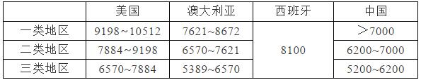 表1:我国与主要发展光热发电国家的太阳能年辐照总量对比(单位: MJ/