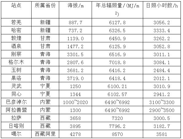 2。据文献[4]介绍,青海省太阳能资源储量全国低温,仅此于西藏,太阳能资源分布均匀,海西和玉树州西部年辐照总量在6400 MJ/