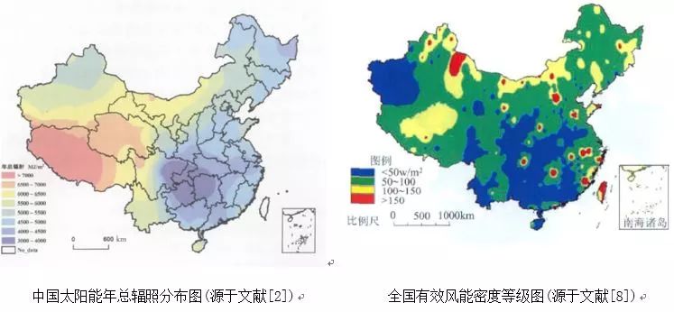 图2:中国太阳能和风能资源分布图