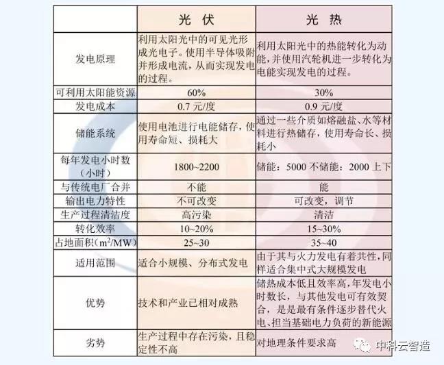 光热发电与光伏发电的对比分析表