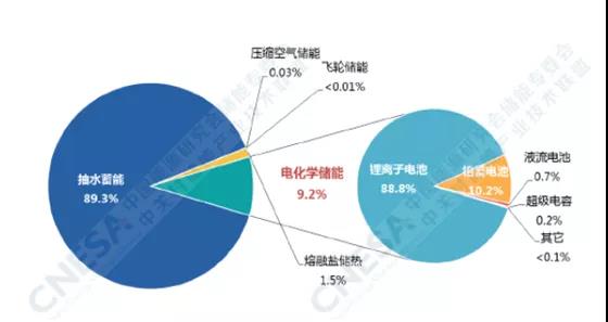 同日发布的《2021年储能产业研究白皮书》指出,截至2020年底,中国已投运储能项目累计装机规模35.6GW,占全球市场总规模的18.6%,同比增长9.8%。其中,抽水蓄能的累计装机规模最大,为31.79GW,同比增长4.9%;电化学储能的累计装机规模位列第二,为3269.2MW,同比增长91.2%;在各类电化学储能技术中,锂离子电池的累计装机规模最大,为2902.4MW。