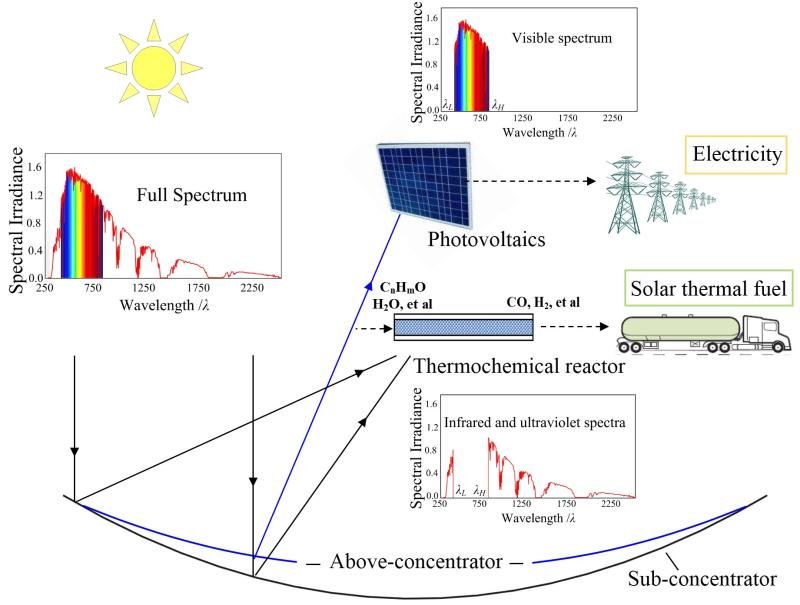 图:聚光光伏光热化学互补联产示意图