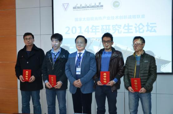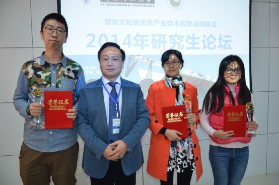 “随着论文评选结果的公布,win德赢网 2014研究生学术论坛圆满落幕。我的研究,我的创新。研讨会不是走形式,而是追求实质。我们将继续努力真正将研究生论坛办成研究生展现自我的舞台,办成联盟品牌,办成国际品牌,为产业发展储备后备人才,全力推动我国太阳能热发电、热利用的进一步发展。”主办方联盟秘书长刘晓冰在总结发言中说。承办方云南师范大学能源与环境科学学院院长李明教授对专家和学生的到来和支持表示感谢,他说,今后云南师范大学将会一如既往把学生研究成果与各科研院所和高校共同分享。大家互相交流、互相学习、互相进步,让研讨会价值真正得以实现,让广大研究生不断创新发展。