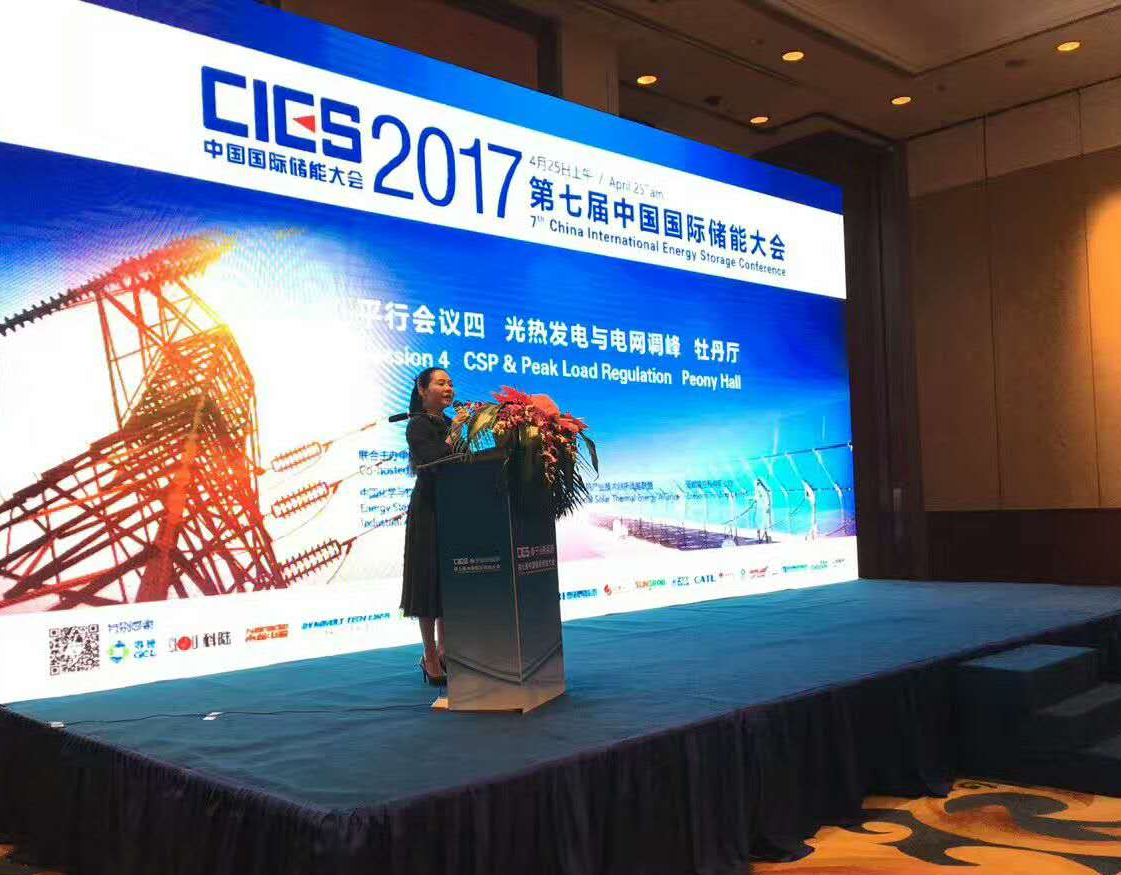 4月25日上午,由国家太阳能光热联盟、中国化学与物理电源行业协会储能应用分会和爱能森控股有限公司联合主办的“光热发电与电网调峰”论坛在苏州香格里拉大酒店隆重举行。来自深圳市爱能森科技有限公司,水电水利规划设计总院新能源部、国网能源研究院新能源与统计研究所、中国电力科学研究院新能源研究中心,浙江大学能源工程学院、武汉理工大学材料学院、华北电力大学等单位的业内知名专家学者共聚一堂,围绕太阳能热发电对电网的作用、太阳能热发电在新一代能源体系中的定位、储能技术等话题进行了交流。会议由深圳爱能森科技有限公司董事长陈明丽主持。