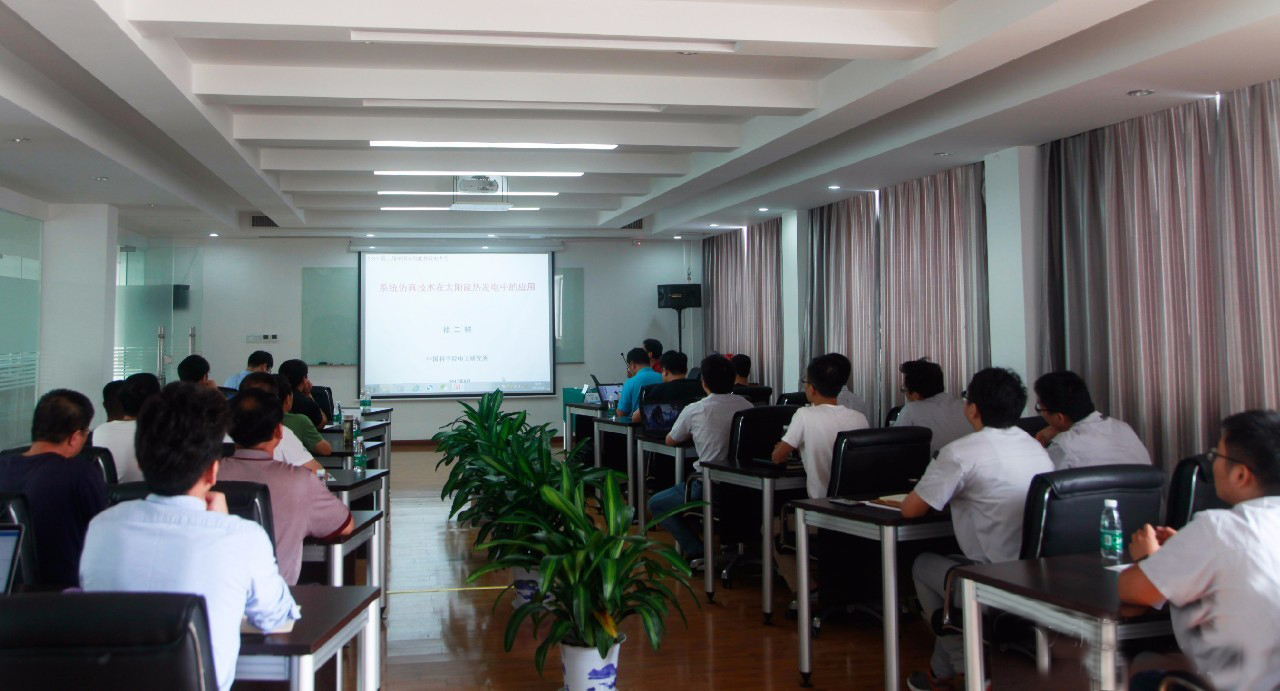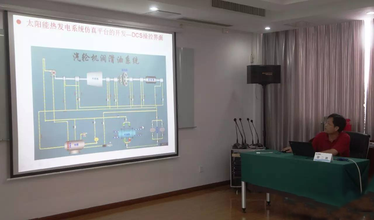 中国科学院电工所研究员、国家863项目首席专家徐二树博士做了题为“系统仿真技术在太阳能热发电中的应用”的报告。公司董事长俞国兴、总经理俞科、各部门负责人以及电站开发工程公司的十多位工程管理和技术人员参加了会议。徐二树研究员介绍了系统仿真技术在光热电站开发中的应用,并结合延庆塔式电站项目和863项目的工程实践经验,指出了运用系统仿真技术对于我国光热电站初步设计优化、运维成本和风险管理以及运维人才培养等方面的重要意义。
