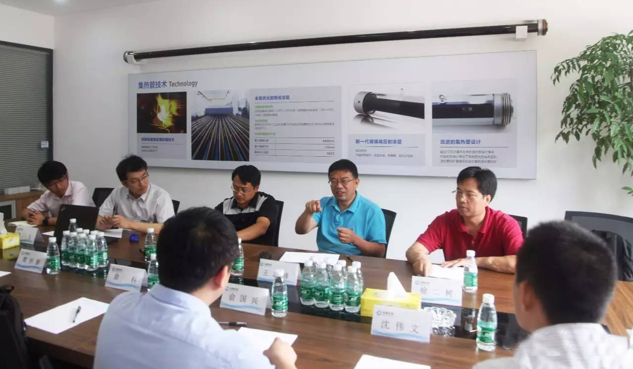 随后,王志峰研究员、徐二树研究员和雷东强博士与公司主要领导举行了座谈会,就双方在太阳能光热发电技术研究与应用领域内的合作事宜展开交流。王志峰研究员指出了高温真空集热管的技术应用拓展以及下一代产品的发展方向,详细了解了硅油这一新型传热介质的应用和试验情况,探讨了其在降低热发电成本的技术路线。双方就高温真空集热管真空性能在线检测技术标准化研究工作进行了合作探讨。