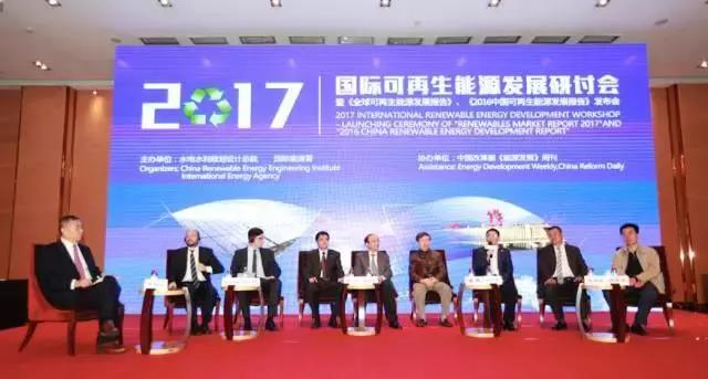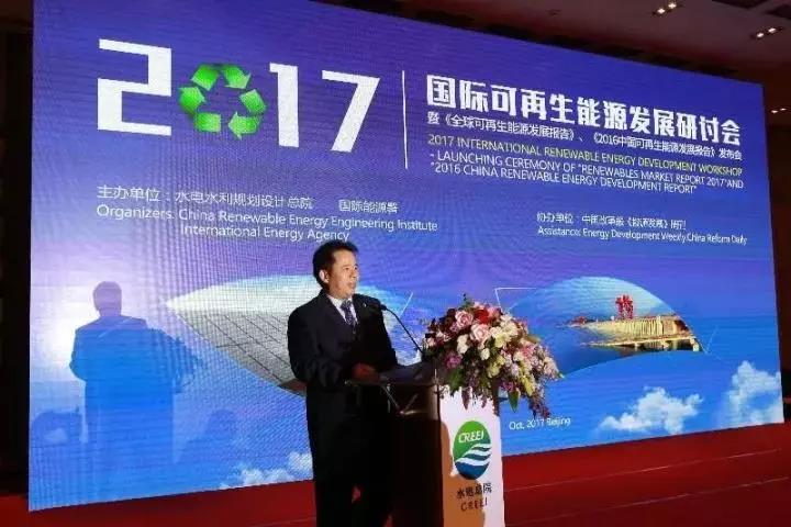 10月17日,“2017国际可再生能源发展研讨会暨《全球可再生能源发展报告》、《2016中国可再生能源发展报告》发布会”在京举行,水电水利规划设计总院和国际能源署在会上联合发布了2016年度的全球和中国可再生能源发展报告,国家能源局副局长綦成元出席发布会并致辞。国家能源局新能源司副司长李创军以及英国、丹麦、德国等国驻华使馆和国际机构代表出席了会议,中国可再生能源投资企业、设备制造企业、设计院以及权威智库等有关单位共300余位专家学者和代表参加了发布会。国际能源署(英文简IEA)可再生能源部高级专家Heymi Bahar、水电水利规划设计总院(下文简称水电总院)院长郑声安在大会上做了报告发布演讲。