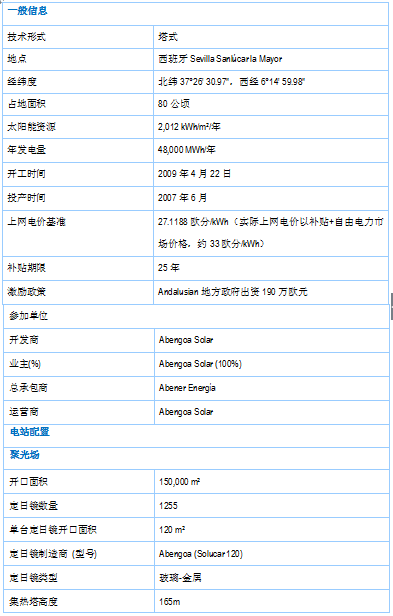 西班牙共有三座塔式太阳能热发电站,分别是PS10,PS20和Gemasolar。