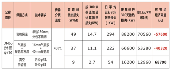 在中科院电工所延庆1MW槽式示范项目中,通过实测,300℃时,节能相比较常规保温管达到85%,400℃时达到70%。