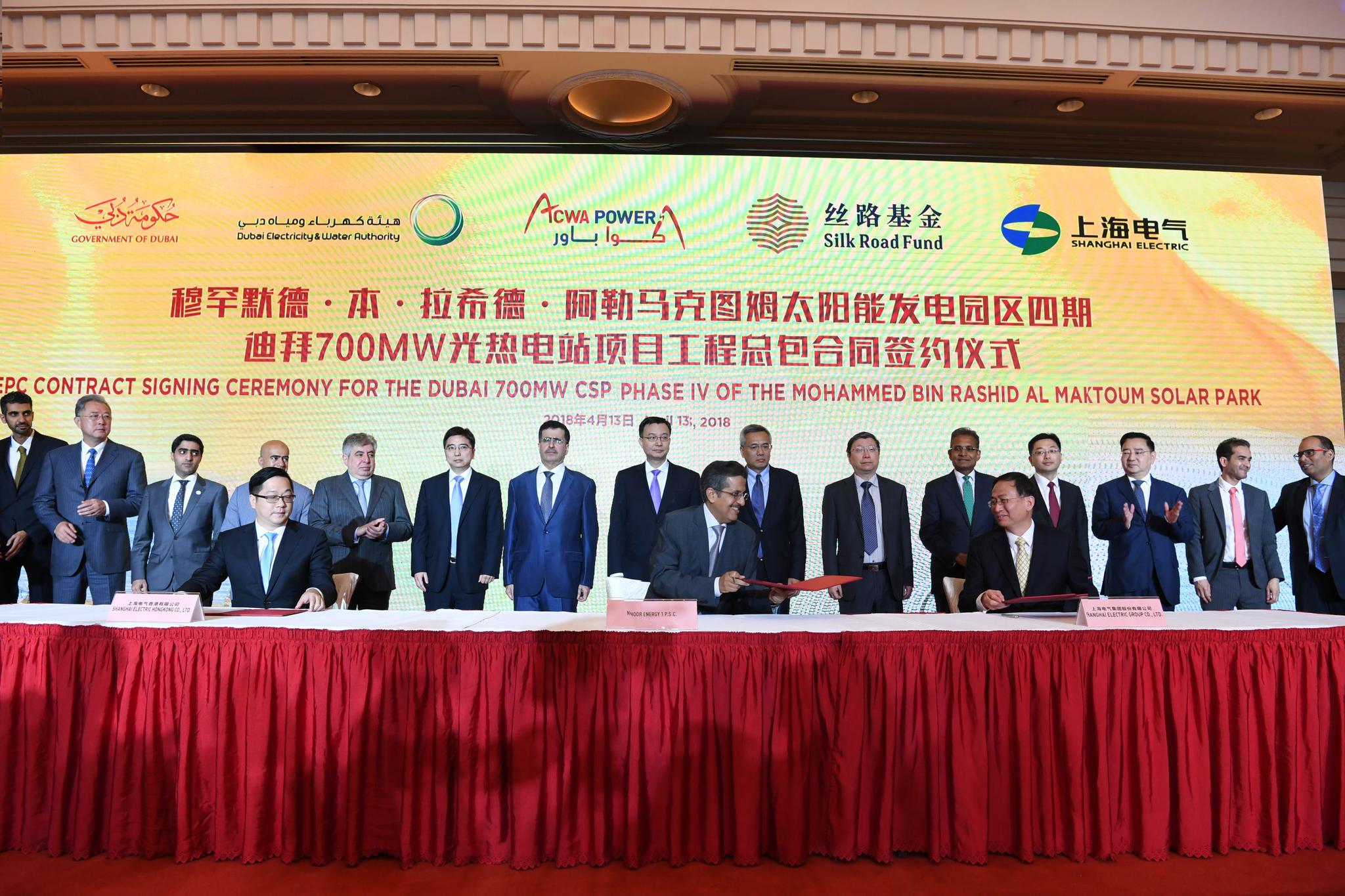 4月13日,上海电气与ACWA电力在上海签署全球最大太阳能热发电项目——迪拜700MW一塔+三槽项目总承包协议(EPC)的消息曾一度在光热圈内圈外刷屏。签约仪式上,项目相关方悉数到场。其中有让我们眼前一亮的融资机构,比如,中国工商银行(ICBC)、中国银行、中国农业银行和中国民生银行。