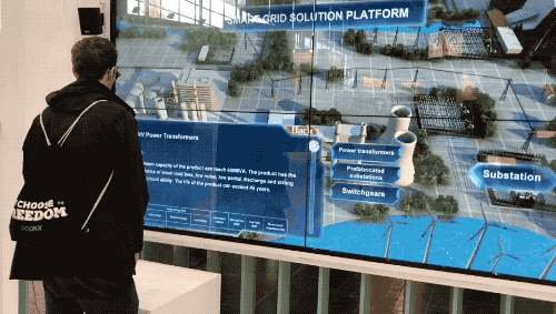 为了更好地与全球顶尖工业企业同台竞技,本次展览在输配电全产业链集成服务、电站机组全生命周期服务解决方案的呈现形式上,采用了大量体感互动、多媒体触屏等创新形式,为展区融入智慧元素,吸引了很多观众的驻足体验。