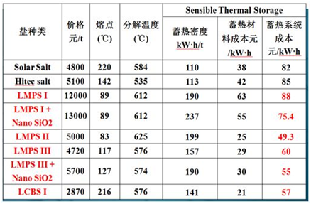 图:北工大配制的各种低熔点低成本混合熔盐与常用熔盐的性能对比