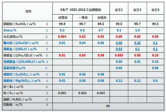 在太阳能热发电用熔盐标准方面,目前还没有太阳能熔盐的国家标准,也相关团体标准正在编制中。通过对国家标准、不同业主要求对比发现,对熔盐产品的要求大部分指标均不相同,有的差别很大,有的没有要求。