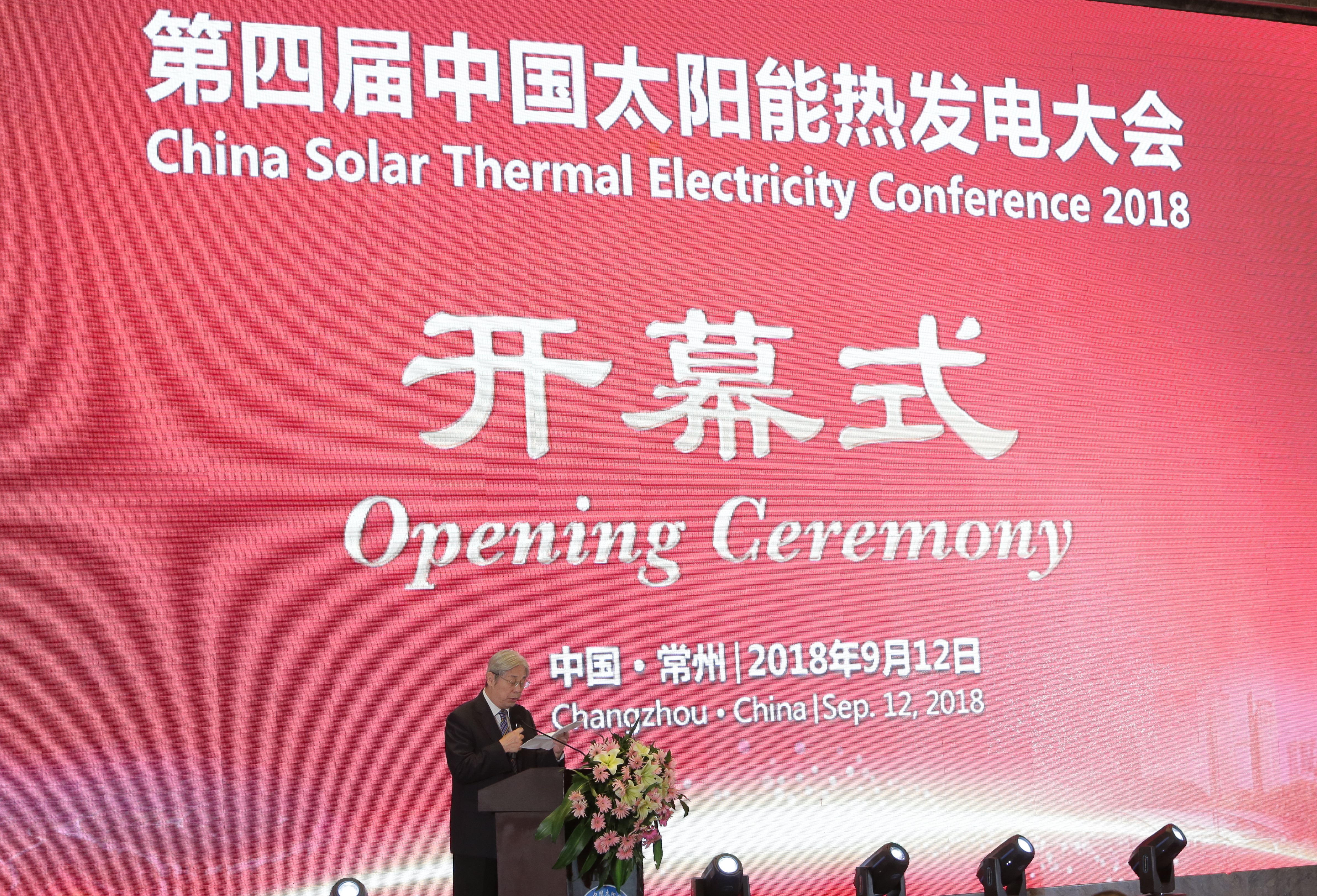 中国科学院徐建中院士、周孝信院士、何雅玲院士;常州市副市长梁一波,玉门市常务副市长张宏军,常州武进区委副书记戴士福等政府相关部门同志;中国可再生能源学会副理事长兼秘书长李宝山,世界工程组织联合会执委李若梅,水电水利规划设计总院副院长易跃春,中国电机工程学会学术部和科普部主任周缨,韩国能源研究所可再生能源和太阳能热发电研究部部长姜龙赫等知名专家、学者、企事业单位、研究院所、投资机构、行业协会代表400余人参加了大会开幕式。大会主席、光热联盟常务副理事长、SolarPACES执委会主席、中国科学院电工研究所王志峰研究员主持了开幕仪式。