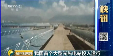 CCTV财经频道《经济信息联播》播发《我国首个大型光热电站投入运行》
