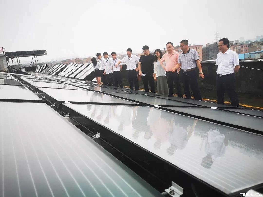 图:科研团队参观“太阳能光伏光热建筑一体化供热发电系统”示范点