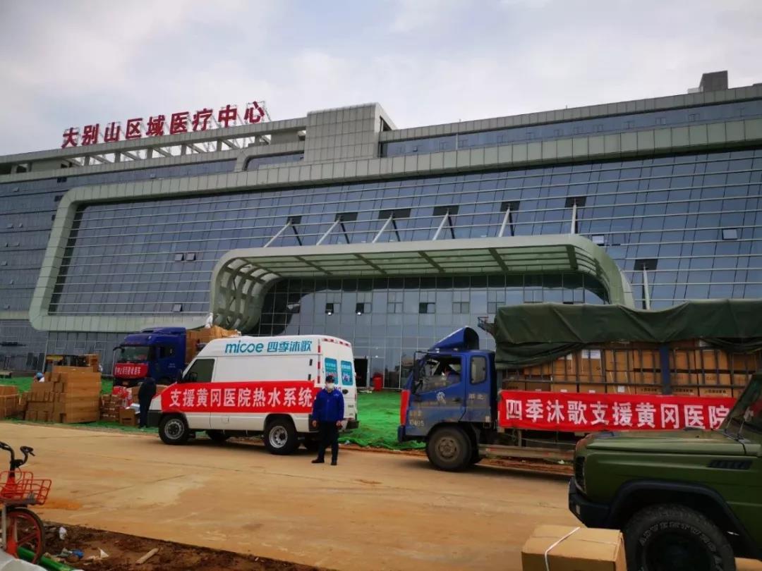 面对疫情蔓延和医疗物资告急的严峻挑战,四季沐歌集团紧急调动物资支援一线医护人员,自1月29日至2月3日,四季沐歌陆续三次分别为武汉市第五医院、黄冈小汤山医院、武汉雷神山医院捐赠热水系统、净水系统、口罩、护目镜、帐篷等物资,助力保障一线医疗工作人员和患者充足的热水供应,帮助其做好自我防护工作。