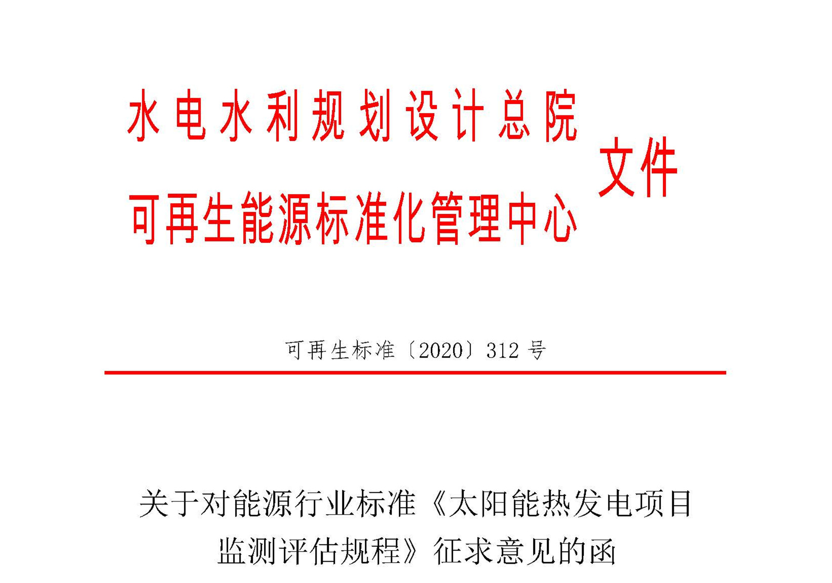 近日,太阳能光热产业技术创新战略联盟副理事长单位——水电水利规划设计总院发布“关于对能源行业标准《太阳能热发电项目监测评估规程》征求意见的函”。