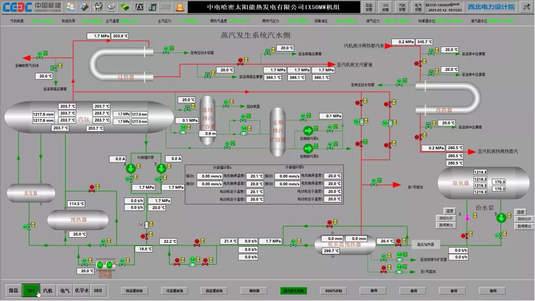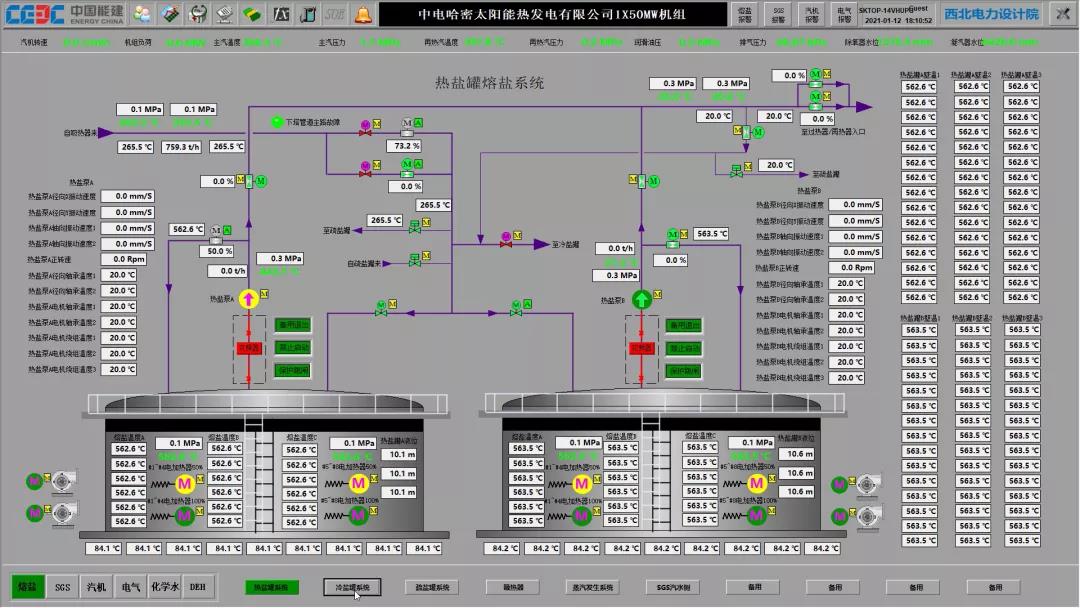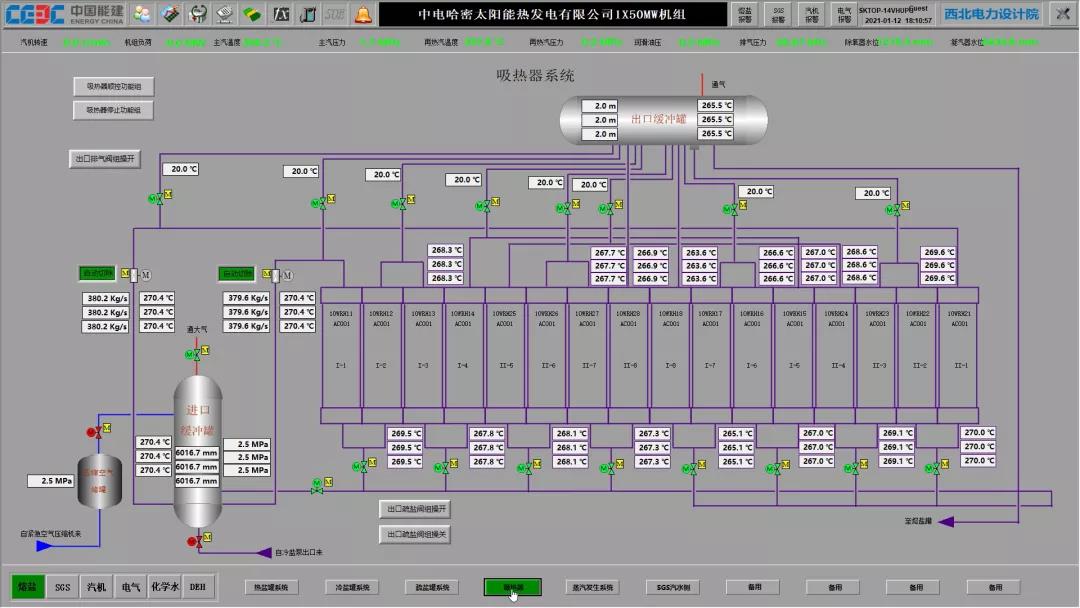 除此之外,光热电站仿真机还能够模拟包括吸热器、储换热、蒸汽发生等系统的DCS操作,操作界面和电厂实际DCS界面完全一致。