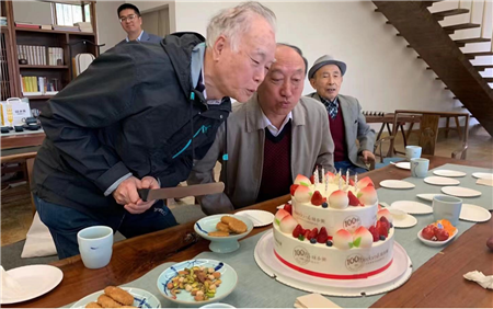 在杜凤丽秘书长宣布“今年要特别感谢北京修德谷为专家们准备的祝寿蛋糕!”后,在《祝你生日快乐》的欢快歌声中,由年龄最长、86岁的罗运俊先生“主刀”切开了蛋糕,与大家一起分享甜蜜与幸福。