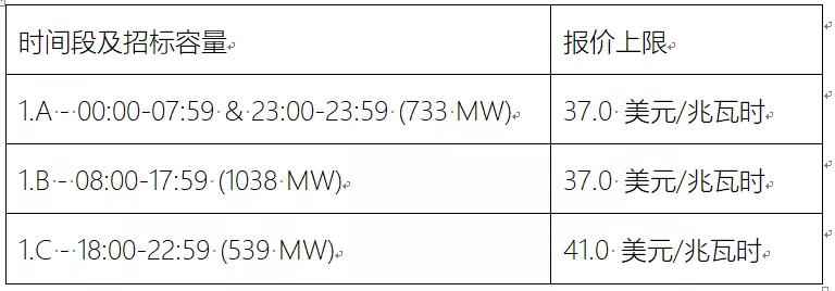 据了解,本次电力供应招标中将一天24小时分成三个段,以每个时间段为单位分别招标。根据智利国家能源委员会 (CNE) 的招标公告,每个时间段的起始时间和电力容量以及每个时间段可能授予的报价的底价或最大值如下所示。